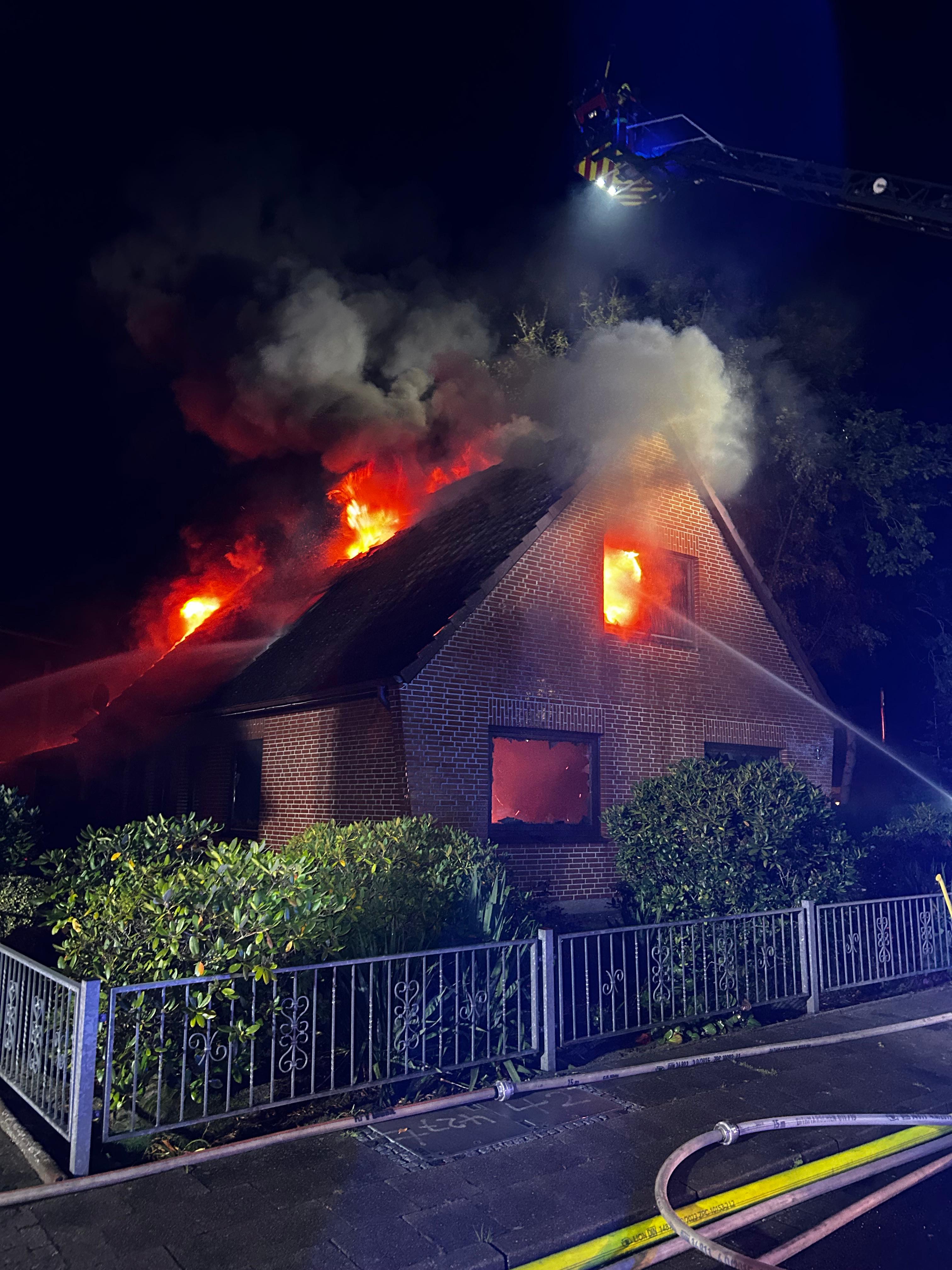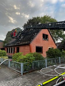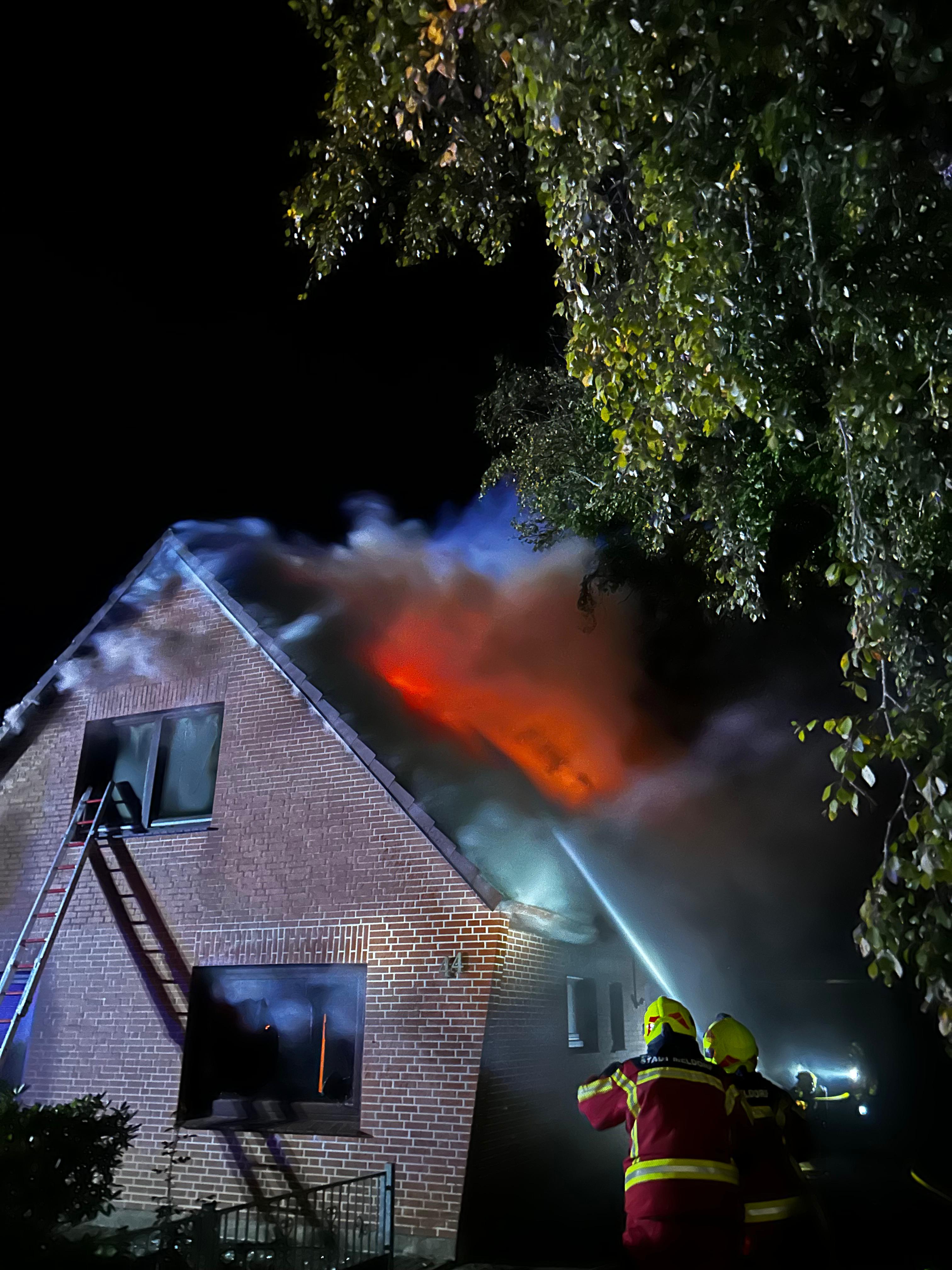Über die Drehleiter sowie mehrere Strahlrohre wurde der Brand gemeinsam mit den Einsatzkräften der Feuerwehren Bargenstedt und Nindorf eingedämmt. Im weiteren Verlauf konnte ein Innenangriff unter Atemschutz durchgeführt werden, um verbliebene Glutnester gezielt abzulöschen.